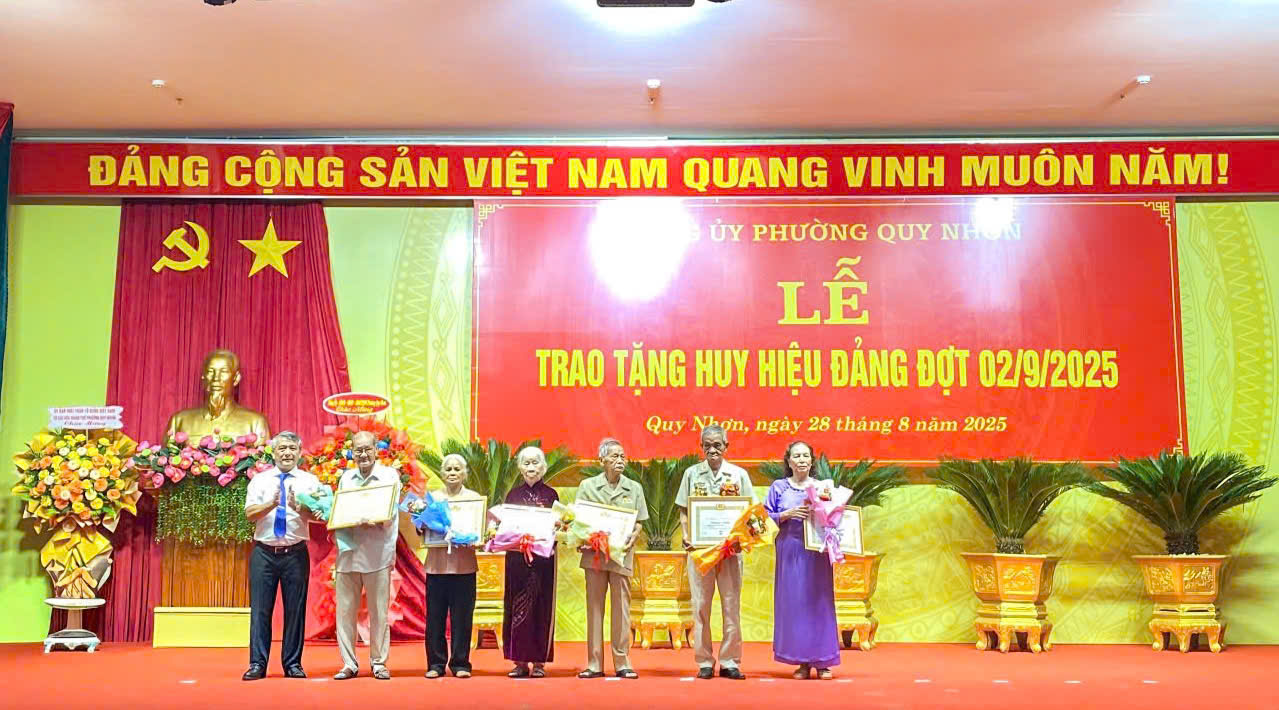 Trong đợt này, Đảng ủy phường Quy Nhơn vinh dự có nhiều đồng chí đảng viên được nhận Huy hiệu Đảng 70 năm, 65 năm, 60 năm, 55 năm, 50 năm, 45 năm, 40 năm và 30 năm. Đây là sự ghi nhận, tôn vinh những đóng góp to lớn, bền bỉ và đầy trách nhiệm của các đồng chí đảng viên trong sự nghiệp cách mạng của Đảng, trong công cuộc xây dựng và bảo vệ Tổ quốc, cũng như trong sự phát triển của địa phương.