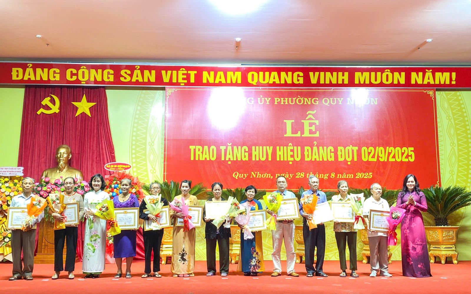 Buổi lễ diễn ra trong không khí trang trọng, ấm áp, thể hiện sự tri ân sâu sắc của Đảng đối với công lao, đóng góp của các thế hệ đảng viên; đồng thời khẳng định quyết tâm của toàn Đảng bộ phường Quy Nhơn trong việc tiếp tục xây dựng, phát triển địa phương ngày càng giàu đẹp, văn minh.