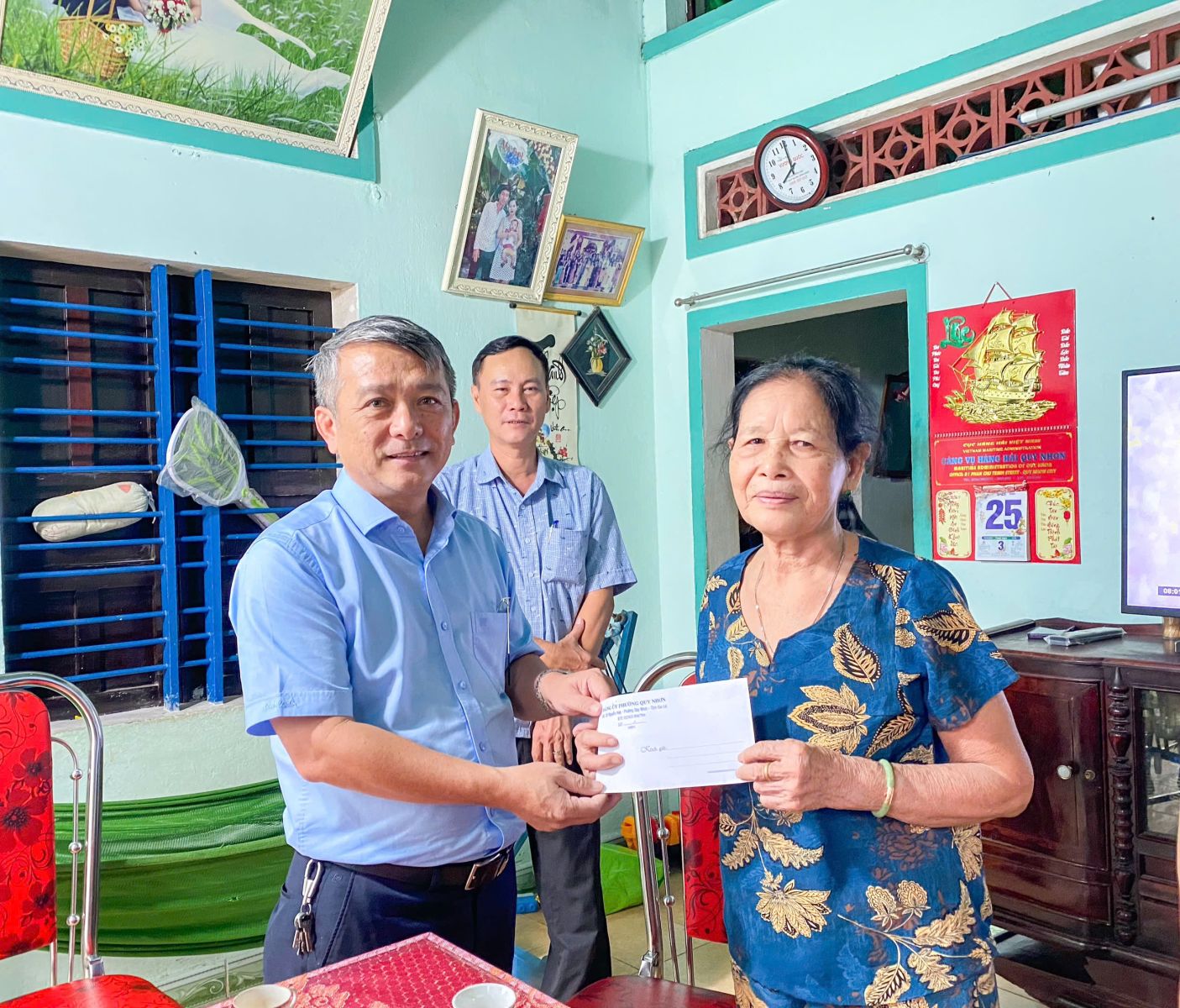 trao tặng quà cho cô Trần Thị Bảy người có công cách mạng