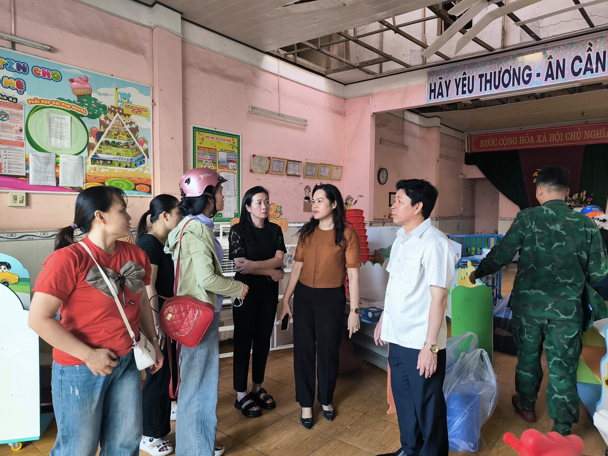 trực tiếp kiểm tra công tác khắc phục bão, lũ tại trường Mầm non Hoa Sen