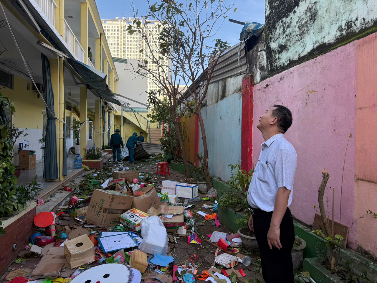 Bên cạnh đó, đồng chí Bí thư Đảng ủy – Chủ tịch HĐND phường cũng chỉ đạo rà soát kỹ tình hình thiệt hại tại các trường học, phối hợp với Phòng Kinh tế, Hạ tầng và Đô thị , Phòng Văn hoá - Xã hội phường, Trung tâm sự nghiệp công phường để sớm sửa chữa, đảm bảo điều kiện học tập an toàn cho học sinh trở lại trường. Đồng thời giao Phòng Kinh tế, Hạ tầng và Đô thị phường lập phương án khắc phục, dự toán chi phí đề xuất cấp trên hỗ trợ.