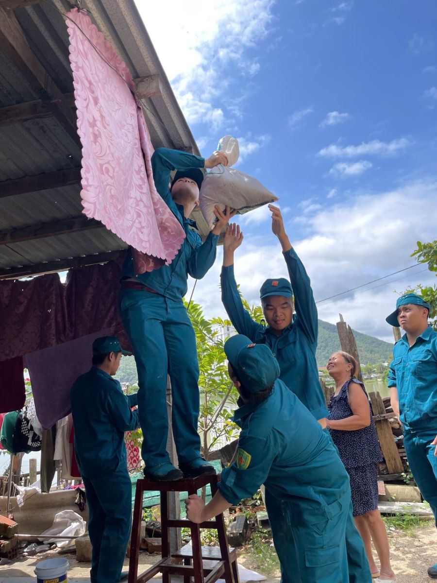 Ban Chỉ huy Quân sự phường hỗ trợ người dân gia cố nhà ở